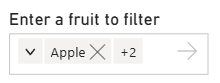 Each entered value becomes its own filter pill, impacting filter context and enabling compound filters.