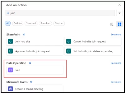 Add the Join action from Data Operations.