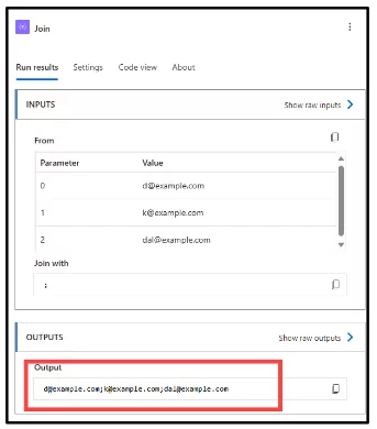 Save your flow, and then run it. In Join with, enter your separator (like ; for emails).