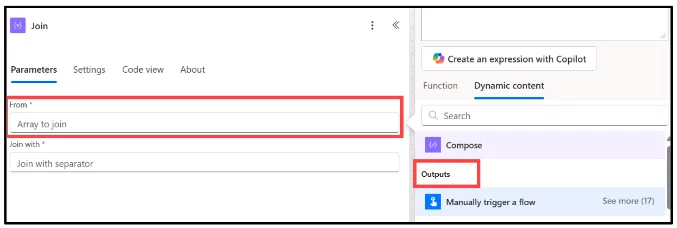 Select Dynamic Content, and choose Outputs from your Compose step.