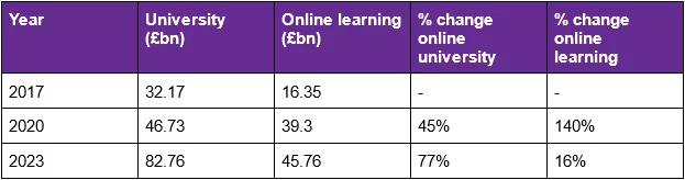 But, interestingly, since 2020 the rate of growth in revenues from online university learning has increased.